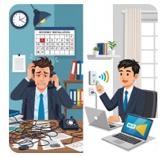 - 時間と手間のかかる開通工事:申し込みから開通まで1ヶ月以上かかることも珍しくなく、ビジネスのスピード感を損なう原因に。
