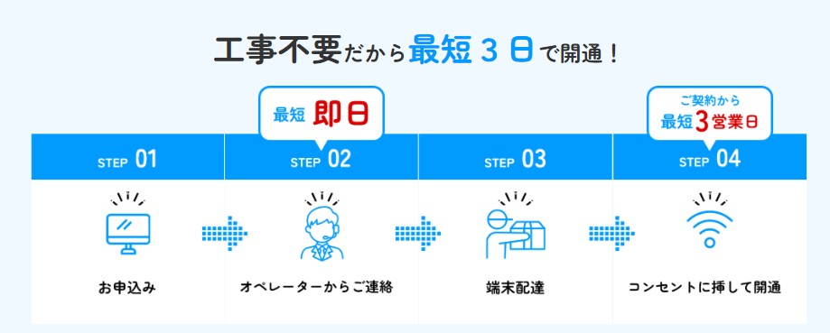 端末が届けば、あとはコンセントに挿すだけ。その日からすぐに高速インターネットが利用可能になります。