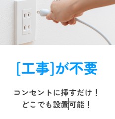 - 特徴:工事不要、コンセントに挿すだけ、最短3日でお届け