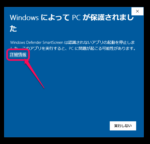 windows10の場合起動すると下記の画面が出るときがあります