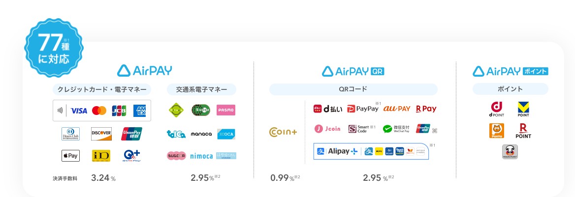 (ここに簡単な比較解説を記述。最終的に、対応決済ブランドの多さやPOSレジ連携の強みからAirペイの優位性を説明する流れにする)