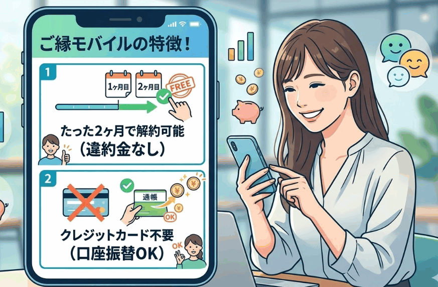短期利用×口座振替なら「ご縁モバイル」一択!3つの圧倒的強み