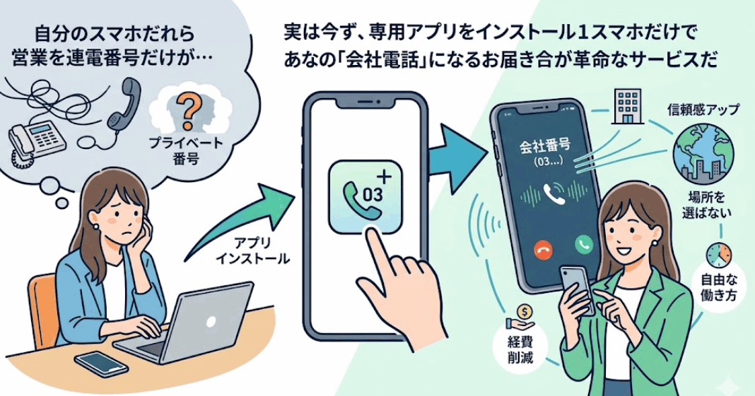 実は今、専用アプリをひとつ入れるだけで、あなたのスマートフォンがそのまま「会社の電話」に変わる画期的なサービスがあります。