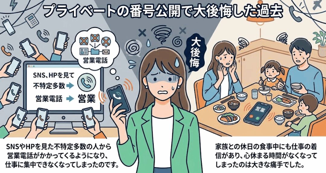 その結果、SNSやHPを見た不特定多数の人から営業電話がかかってくるようになり、仕事に集中できなくなってしまったのです。