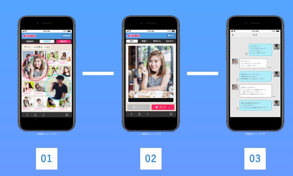 Asoboでの出会いは本当に簡単。たったの3ステップです。