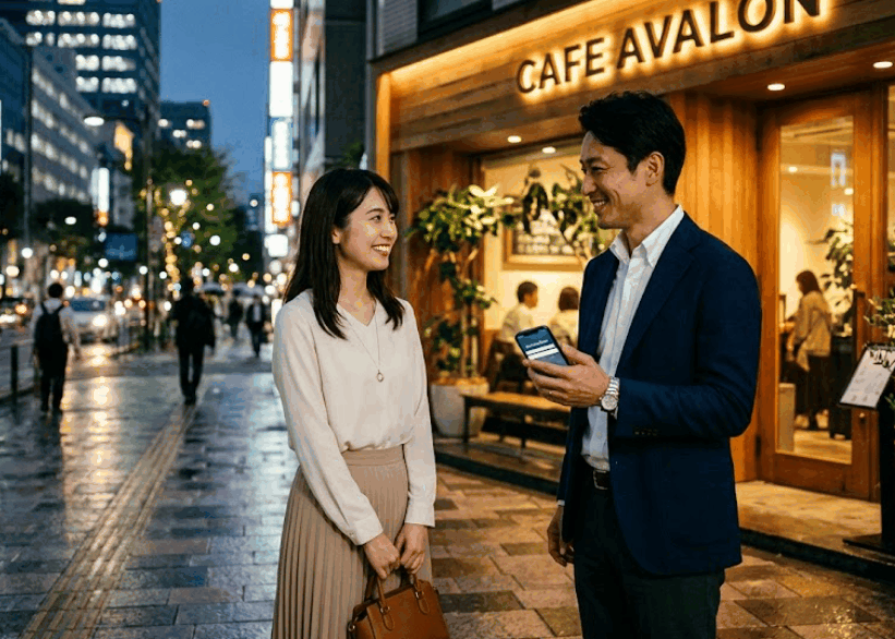 事前のメッセージのやり取りは一切なく、AIが指定してくれた落ち着いたカフェの前で合流することになりました。